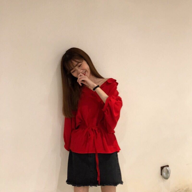 トップスレディース 送料無料 七分袖ブラウス カラバリ 2色 レッド ホワイト サイズ4展開 S M L XL ウエストマーク ランタンスリーブ フリル シフォン ブラウス ウエスト絞り 上品 きれいめ 大人 休日 通勤 デート 女子会 ママ友 ランチ ランチ ディナー お出かけ カジュアル シンプル デイリー 日常 20代 30代 40代 幅広い年代 春 夏 秋 冬 オールシーズン 韓国 韓国ファッション オルチャン