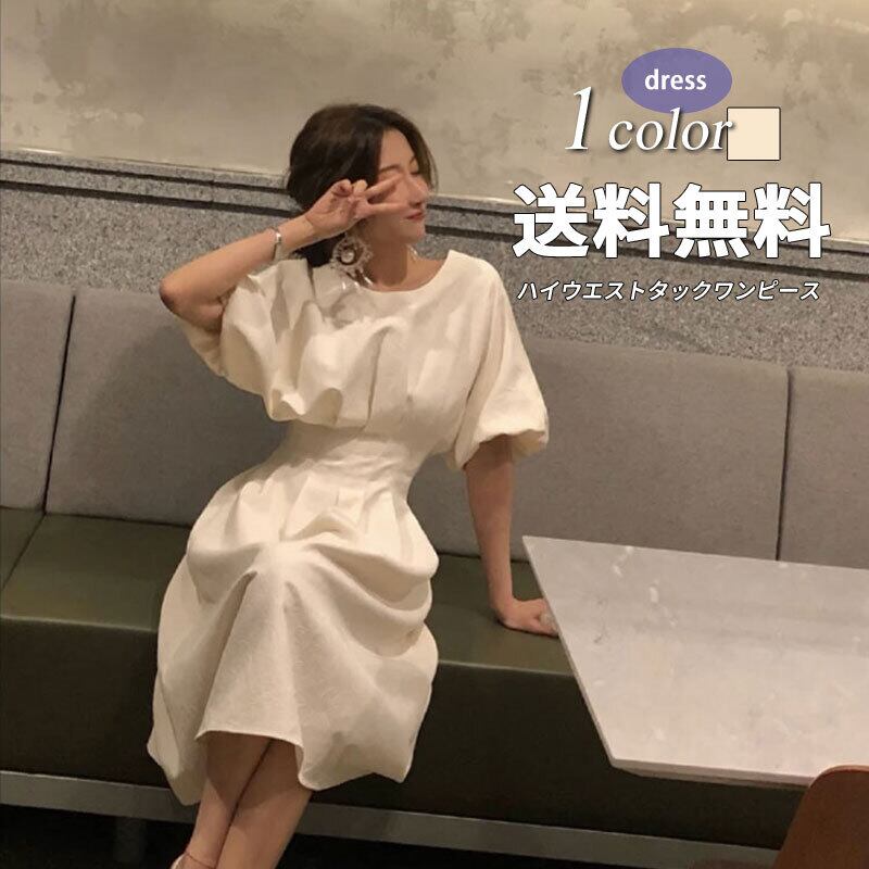 ワンピース レディース 送料無料 パフスリーブワンピース パーティードレス 半袖 バルーンスリーブ ハイウエスト タック おしゃれ ロマンチック ガーリー キュート かわいい こなれ感 スタイル 小顔見せ 着痩せ 体形カバー インスタ トレンド タッキング きれいめ エレガント かっこいい シンプル こなれ感 モード 大人かわいい 上品 清楚 立体生地 花柄 ホワイト 結婚式 お呼ばれ 二次会 パーティー フォーマル イベント ドレス カジュアルドレス