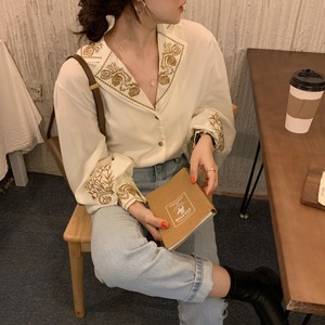 レトロでクラシカルなゴールドの刺繍が高貴な雰囲気のブラウスです。