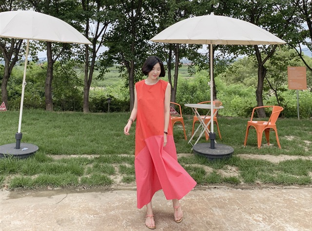 ワンピース レディース 送料無料 2色展開 Tシャツワンピース フレアワンピース ロングワンピース マキシワンピース 丸首 ラウンドネック ノースリーブ 袖なし 体型カバー 細見え 華奢見え スタイルアップ 切り替えデザイン ロング丈 マキシ丈 レッド ブルー フェミニン 上品 エレガント 大人女子 大人可愛い こなれ感 おしゃれ お洒落 カジュアル シンプル シック モダン スタイリッシュ フェミニン 爽やか 涼し 清潔感 アシメ 春服 夏服 おでかけ デート 普段使い 重ね着 着回し 30代 20代