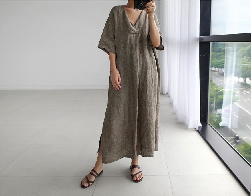 ワンピース レディース 送料無料 3色展開 シャツワンピース フレアワンピース ロングワンピース マキシワンピース Vネック 半袖 五分袖 5分袖 体型カバー 脚長 細見え 華奢見え スタイルアップ 二の腕カバー ロング丈 マキシ丈 カーキ ブラウン ブルー フェミニン きれいめ 上品 エレガント 大人女子 大人可愛い こなれ感 おしゃれ お洒落 カジュアル シンプル シック モダン スタイリッシュ 爽やか 涼し 清潔感 抜け感 春服 夏服 秋服 おでかけ デート 普段使い 重ね着 着回し 30代 20代