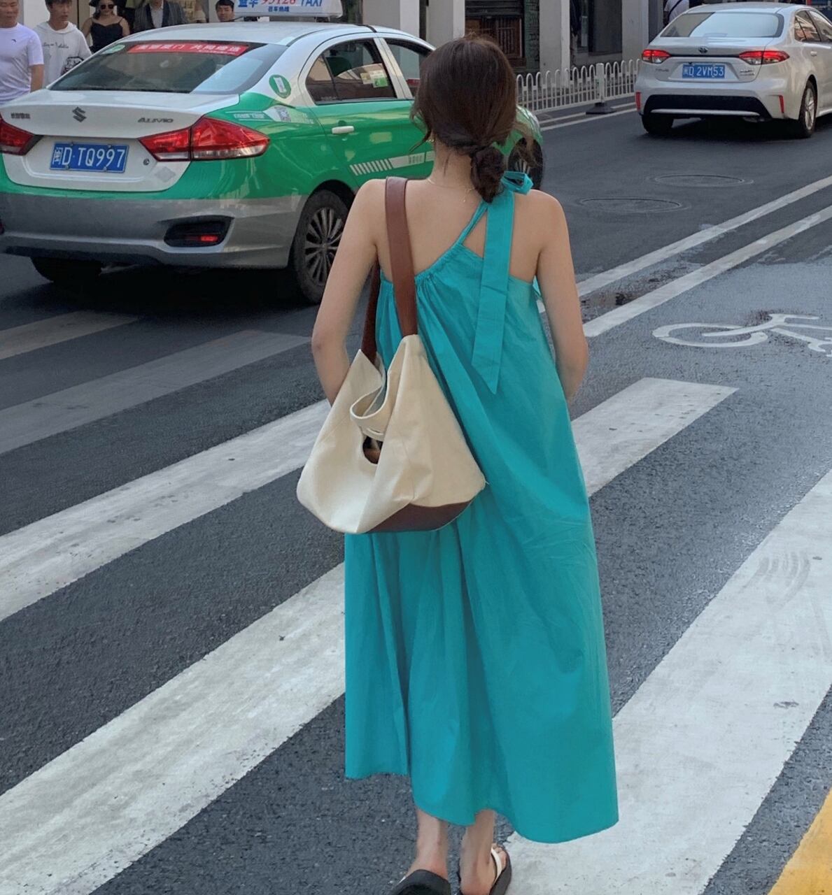 ワンピース レディース 送料無料 フレアワンピース ロングワンピース ミモレワンピース アシメネック ワンショルダー ノースリーブ 袖なし 体型カバー 脚長 細見え 華奢見え スタイルアップ ロング丈 ミモレ丈 ターコイズブルー 青色 フェミニン きれいめ 上品 エレガント 大人女子 大人可愛い こなれ感 おしゃれ お洒落 カジュアル シンプル シック モダン スタイリッシュ オープンオープンバック サンドレス 涼し 爽やか デコルテ 春服 夏服 おでかけ デート 普段使い 重ね着 着回し 10代 20代