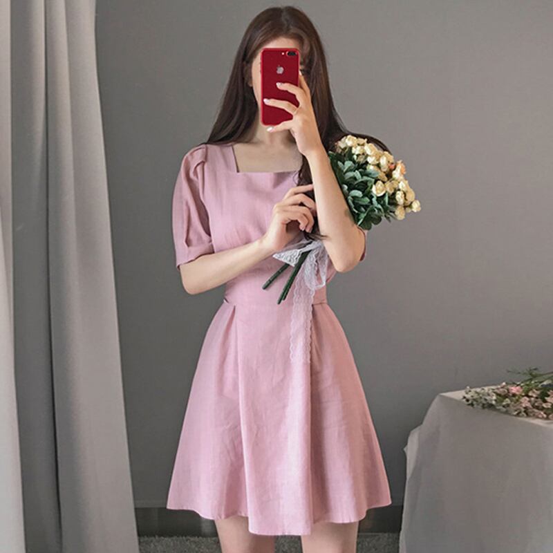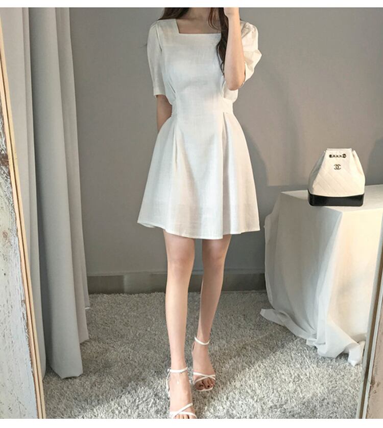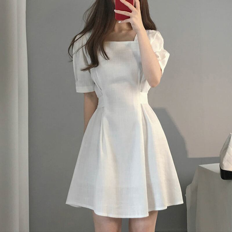 ワンピース レディース 送料無料 2色 フレアワンピース 半袖 ハイウエスト ショート丈 スクエアネック シンプル ホワイト ピンク 無地 リラックス おしゃれ ロマンチック ガーリー キュート かわいい ナチュラル 上品 清楚 こなれ感 スタイル 小顔見せ 着痩せ 体形カバー インスタ トレンド きれいめ エレガント カジュアル ボリューム フレア 大人かわいい 上品 ドール お人形 ふんわり パフスリーブ Aラインワンピース デート お出かけ ミニワンピース ミニドレス フォーマル