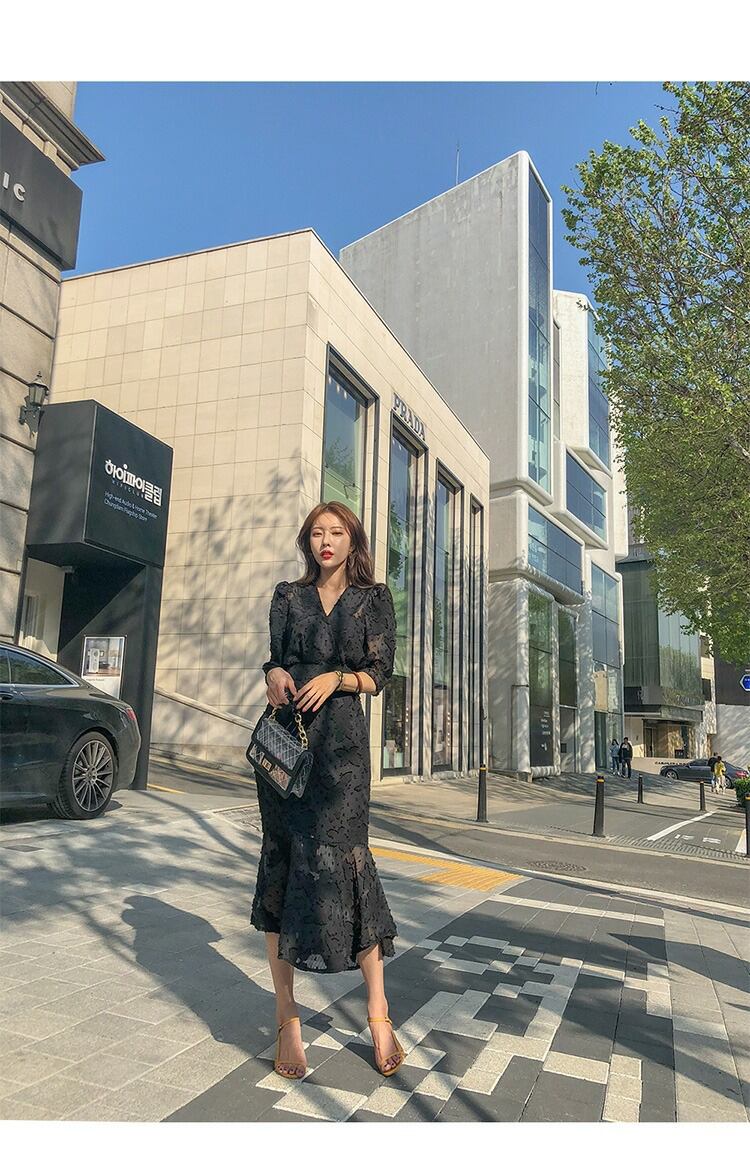 ワンピース レディース 送料無料 タイトワンピース フレアワンピース ロングワンピース ミモレワンピース Vネック デコルテ フィットアンドフレア マーメイド 半袖 五分袖 5分袖 パフスリーブ ハイウエスト ウエストマーク 体型カバー 脚長 細見え 華奢見え スタイルアップ 二の腕カバー ロング丈 ミモレ丈 ブラック フェミニン きれいめ 上品 エレガント 大人女子 こなれ感 おしゃれ お洒落 シック モダン スタイリッシュ 洗練 春服 夏服 おでかけ デート 普段使い 重ね着 着回し 30代 20代