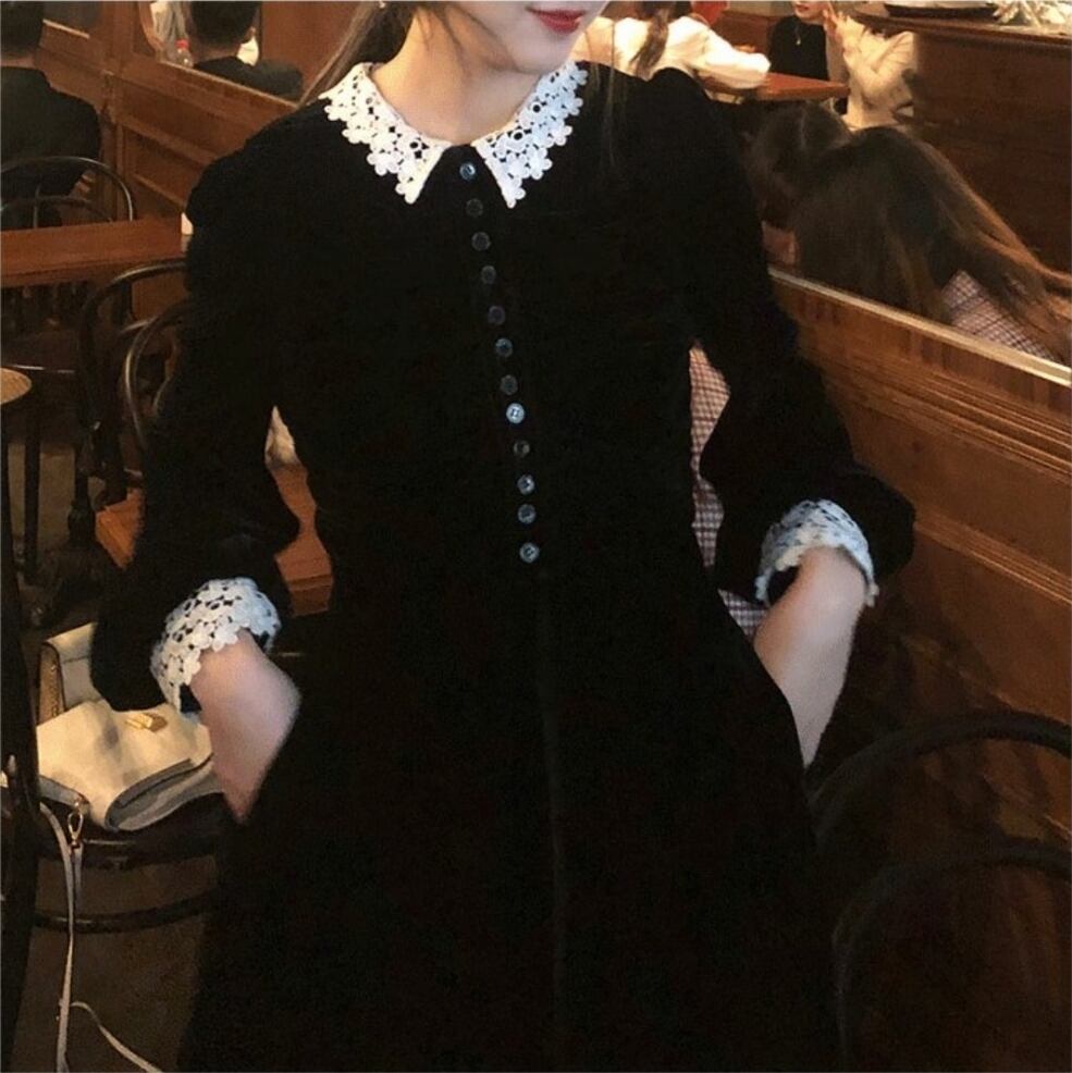 ワンピース レディース 送料無料 フレアワンピース ロングワンピース ミモレワンピース クルーネック スタンダードカラー レース 長袖 ロングスリーブ ハイウエスト ウエストマーク 体型カバー 脚長 細見え 華奢見え スタイルアップ 二の腕カバー ロング丈 ミモレ丈 ホワイト ブラック バイカラー フェミニン きれいめ 上品 エレガント 大人女子 大人可愛い こなれ感 おしゃれ お洒落 ガーリー レトロ シック スタイリッシュ 春服 秋服 冬服 おでかけ デート 普段使い 重ね着 着回し 30代 20代