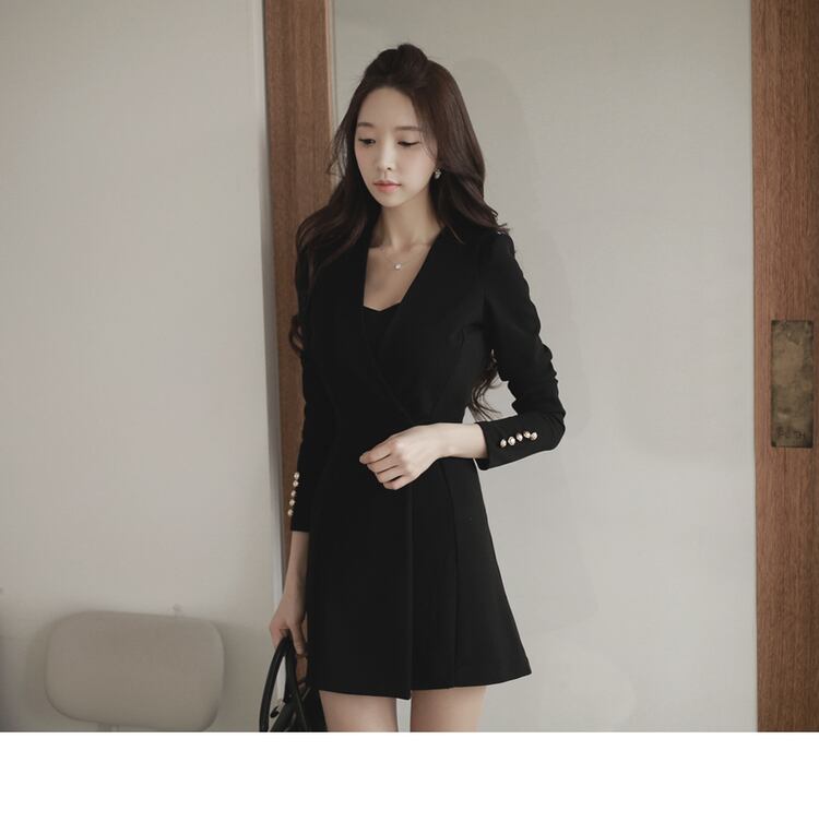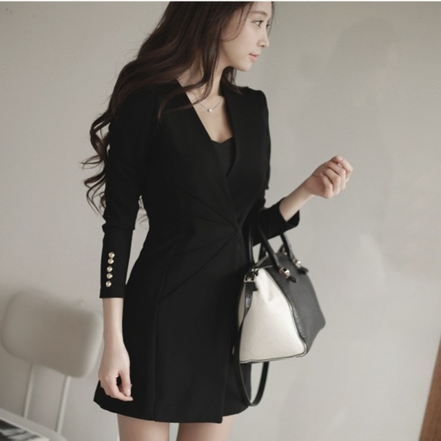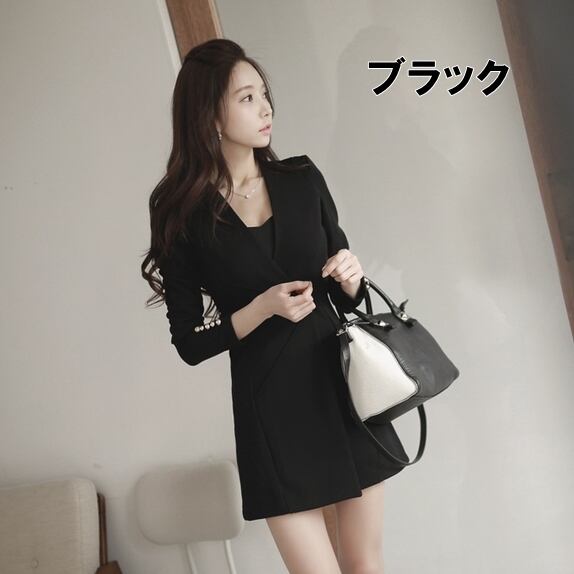 ウエストのラップ調デザインがシックなジャケット風ワンピース。
