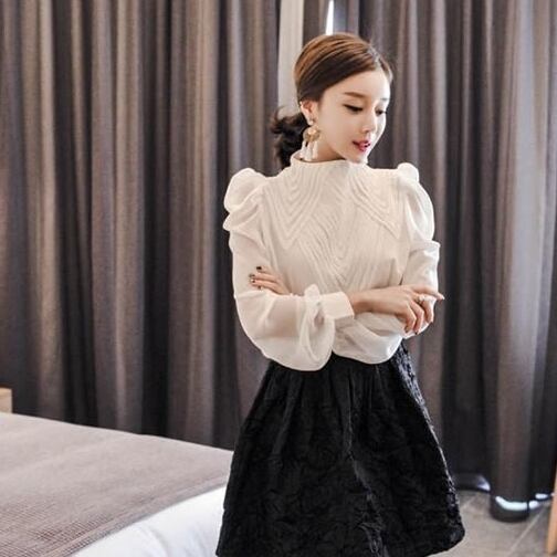 トップス レディース 送料無料 2色 シャツ ブラウス スタンドカラー ハイネック 透け感 刺繍 ビッグカラ― 無地 単色 フリル ゆったり ゆる 大きめ 楽ちん パワーショルダー パフスリーブ バルーンスリーブ バブルスリーブ ボリューム袖 長袖 プルオーバー シンプル 大人可愛い 大人女子 上品 エレガント かわいい ふんわり 透け感 抜け感 こなれ感 お洒落 カジュアル ラフ おしゃれ きれいめ 涼し 10代 20代 30代 通学 学生 春服 夏服 普段使い 着回し デート おでかけ モテ