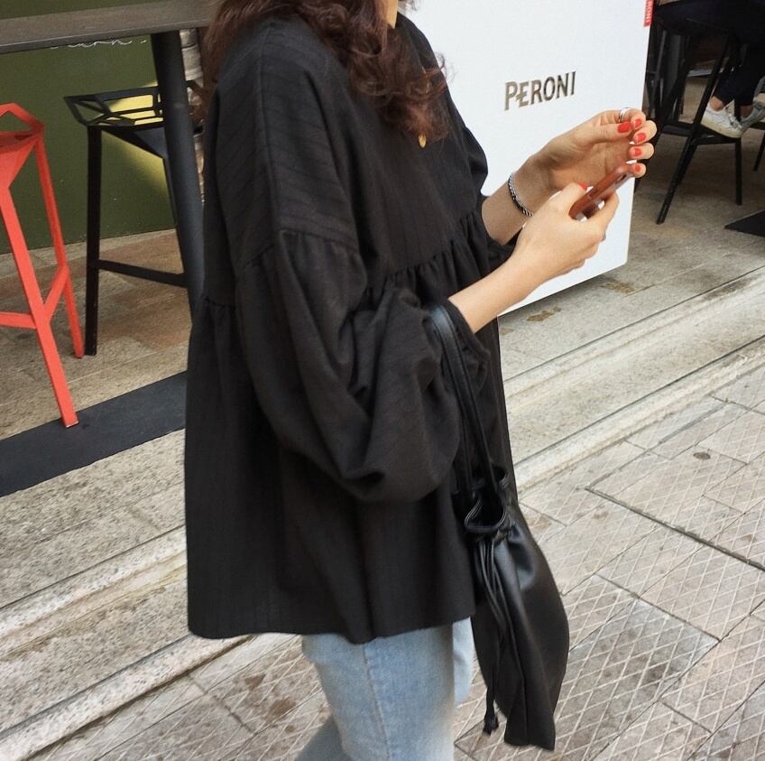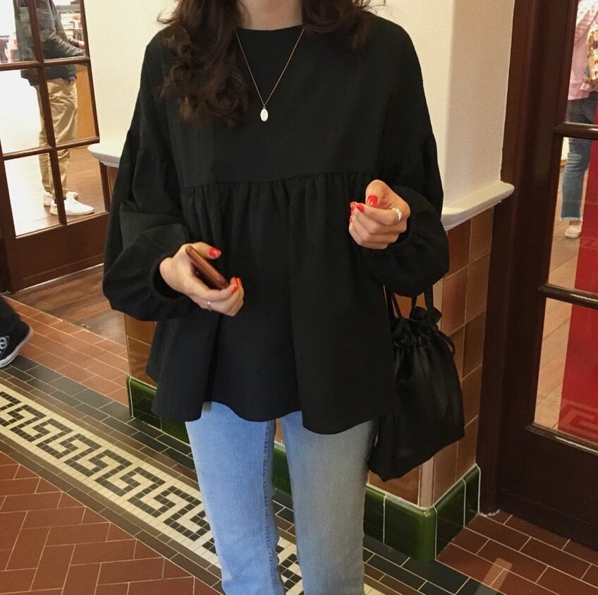 ラウンドネック 長袖 ミディアム丈 ブラウス カジュアル 無地 トップス 袖あり フレア かわいい 大人可愛い きれいめ シンプル カジュアル 大人 上品 おしゃれ お洒落 大人可愛い 大人女子 ラブリー キュート ガーリー クール エレガント 黒 ブラック 無地 春 夏 秋 10代 20代 30代 40代 レディース オフィス ビジネス OL 通勤 学生 通学 デート お出かけ 着回し 普段使い 重ね着 韓国 韓国系 オルチャン ファッション コーデ モテ トレンド 流行