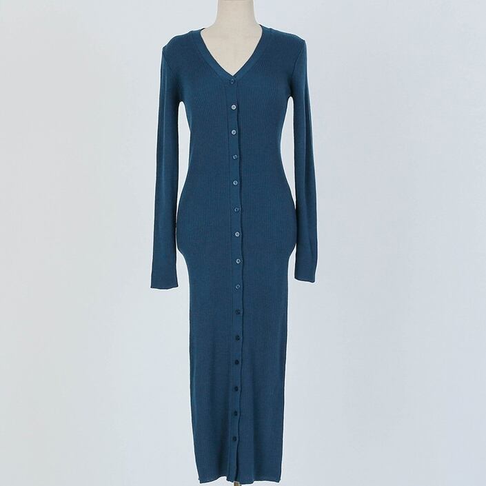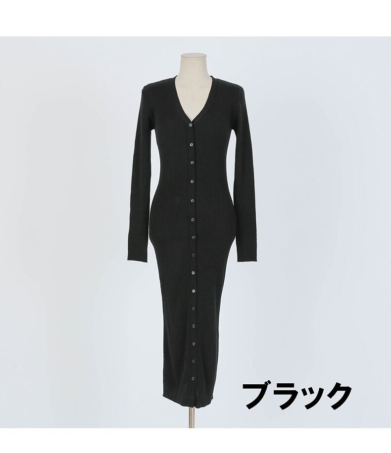 大きく開いたVネックがセクシーなタイトなニットワンピースです。