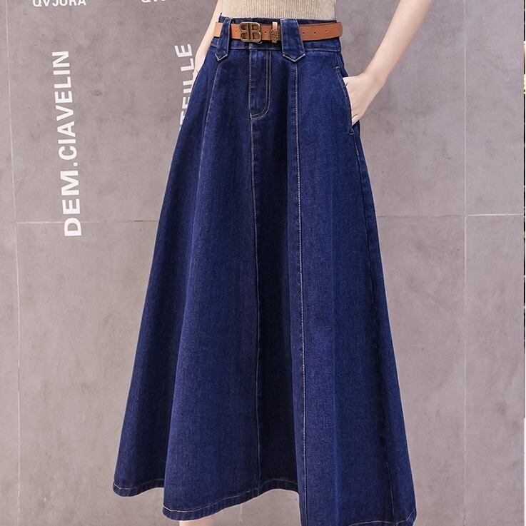 ミモレ丈 ハイウエスト Aライン デニム スカート カジュアル フレア かわいい 大人可愛い きれいめ シンプル カジュアル 大人 上品 おしゃれ お洒落 大人可愛い 大人女子 ラブリー キュート ガーリー 抜け感 青 ブルー 10代 20代 30代 レディース 女性用 無地 学生 通学 デート お出かけ 公園デビュー 休日 着回し 普段使い 重ね着 韓国 韓国系 オルチャン ファッション コーデ スタイル モテ