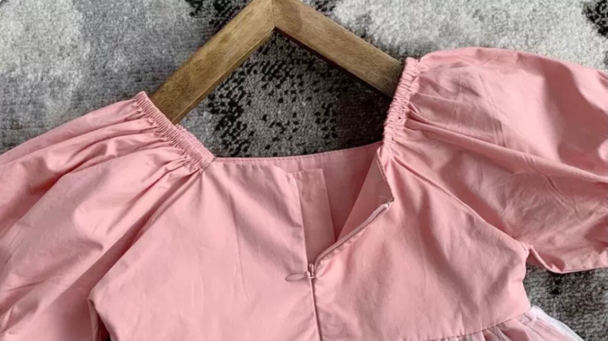 半袖パフスリーブのフレアワンピース