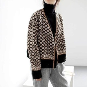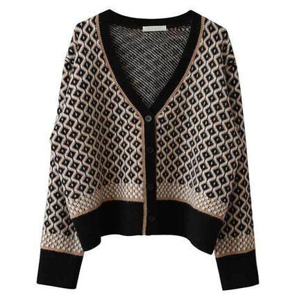レトロなパターンとフォルムが可愛いニットカーディガンです。