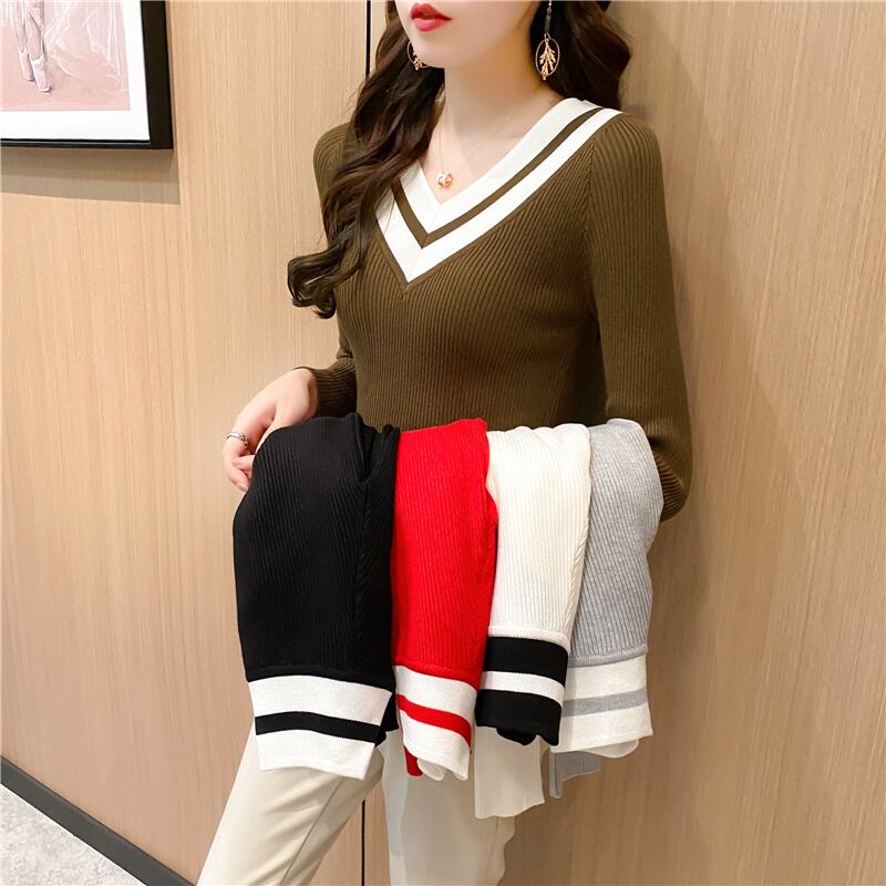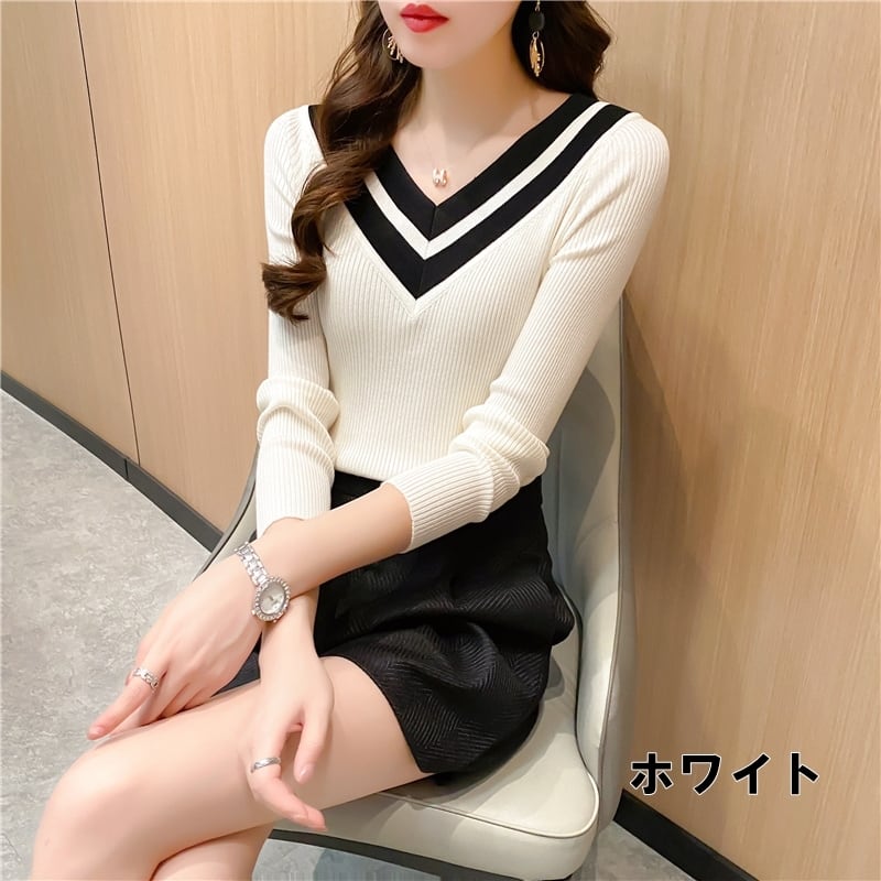 Vネック リブ 長袖 ニットセーター 細身 送料無料 5色 ライン バイカラー シンプル カジュアル トップス 袖あり スリム タイト ストレート 大人可愛い きれいめ シンプル カジュアル 大人 上品 おしゃれ お洒落 かっこいい 大人可愛い 大人女子 キュート ガーリー セクシー エレガント 白 ホワイト 黒 ブラック 赤 レッド 青 ブルー 黄色 ピンク 無地 春 秋 冬 レディース オフィス ビジネス OL 通勤 学生 通学 デート お出かけ 着回し 普段使い 重ね着 韓国 韓国系 定番
