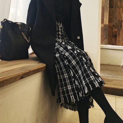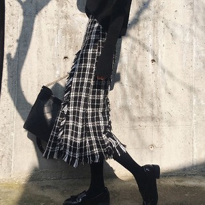 ガーリーなフリンジが可愛いツイードチェックスカート。