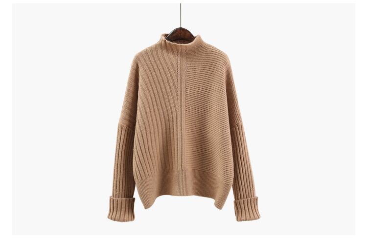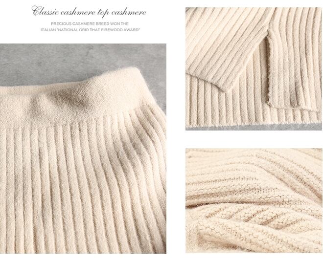 左右の向きの違うリブがモダンな雰囲気を漂わせるゆったりニットとスカート。