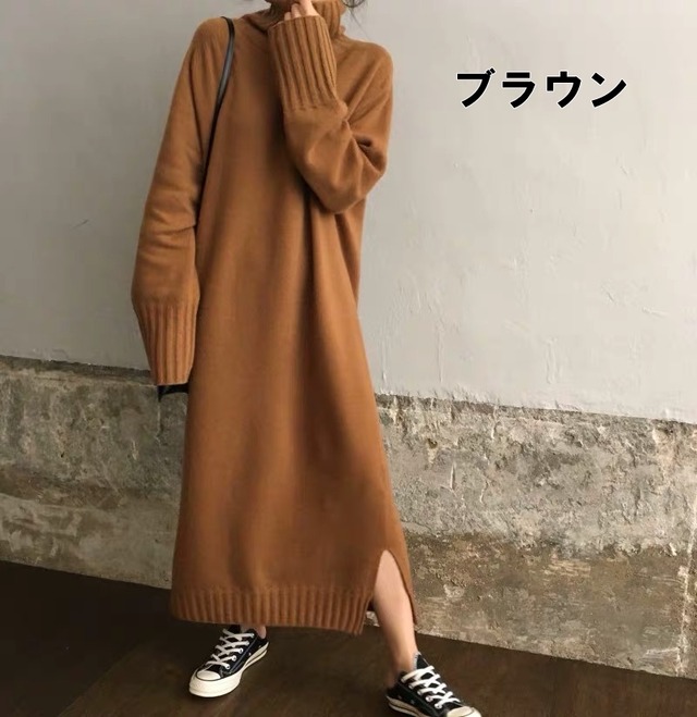 ワンピース レディース 送料無料 3色 ニットワンピ リブニット マキシ丈 ワンピ オーバーサイズ ビッグシルエット ニットドレス 長袖 リブニット ハイネック タートルネック ウエストベルト ハイウエスト スリム スリット ひざ下丈 ストレッチ 伸縮性 スリット袖 イエロー ブラック ブラウン 秋 オータム ハイウエスト かわいい きれいめ かっこいい おしゃれ 着痩せ スタイル 美脚 インスタ ボトルネック セクシー 女子会 お出かけ カジュアル エレガント ウエストマーク オータムカラー