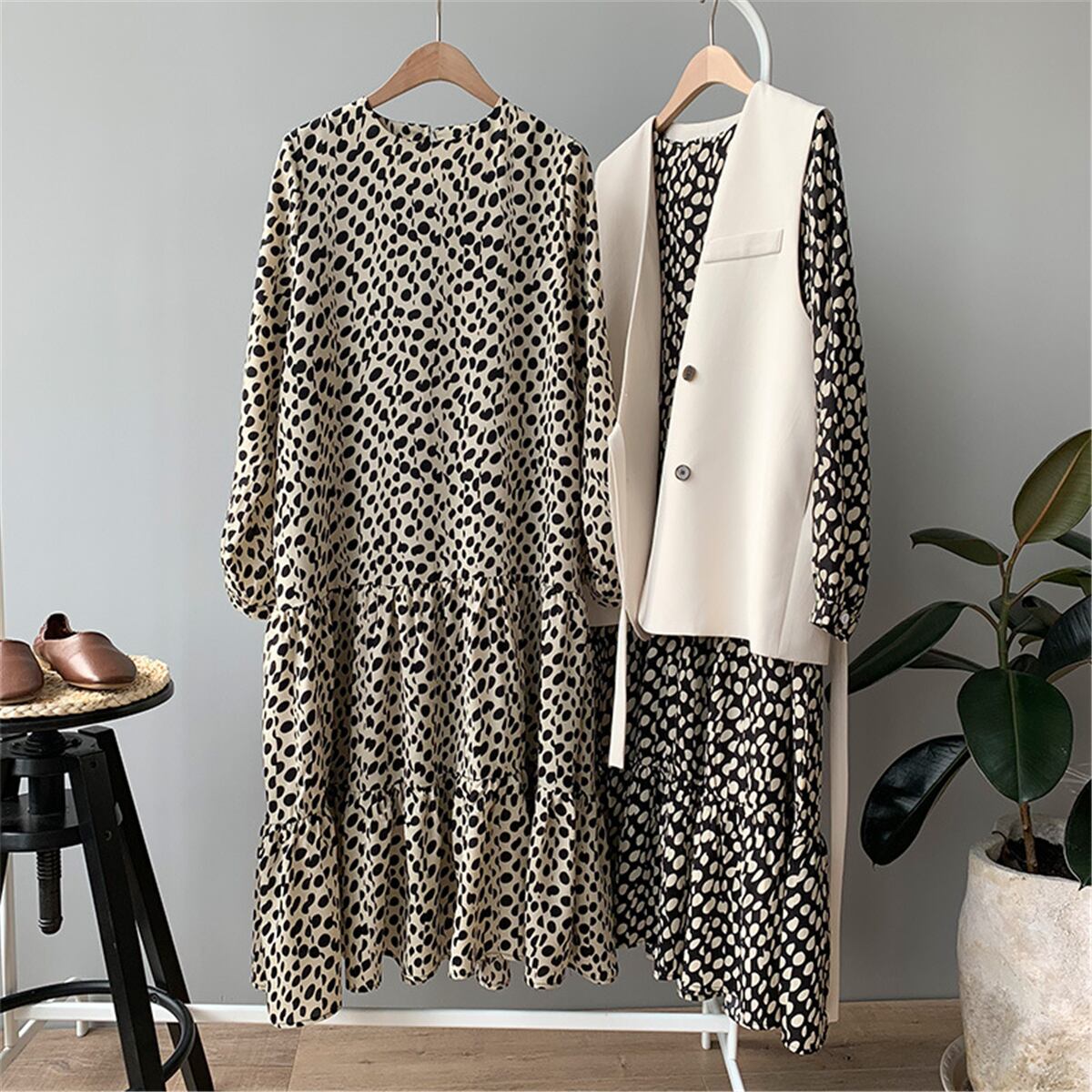 ワンピース ドレス レディース 送料無料 2色 ティアードワンピース フリルミモレ丈 ロング 袖あり ダルメシアン クルーネック パフスリーブ オーバーサイズ かわいい 大人可愛い きれいめ 上品 おしゃれ 大人女子 こなれ感 ラブリー キュート ガーリー 個性的 モード系 セクシー エレガント モダン 主役級 存在感 フォーマル 抜け感 S M L XL 黒 ブラック ベージュ ドット柄 水玉 春 夏 秋 冬 オールシーズン 20代 お出かけ パーティー イベント 美脚 脚長 インスタ映え
