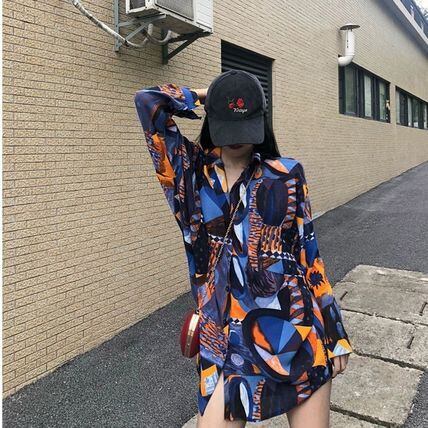トップス レディース 送料無料 シャツ 長袖 開襟シャツ 幾何学模様 油絵 襟付き スタンドカラー オーバーサイズ ビッグシルエット メンズライク オーバーサイズ ゆったり ゆる 透け感 抜け感 こなれ感 シック クール 個性的 華やか 派手 無地 春 春服 春物 秋 秋服 秋物 普段使い 重ね着 着回し おしゃれ お洒落 ラフ カジュアル 前開き シルバー 銀 ブラック 黒 グレー 灰色 涼し 通気性 薄手 ポリエステル シフォン シフォンシャツ ワイド 存在感 モード系 エキゾチック デート