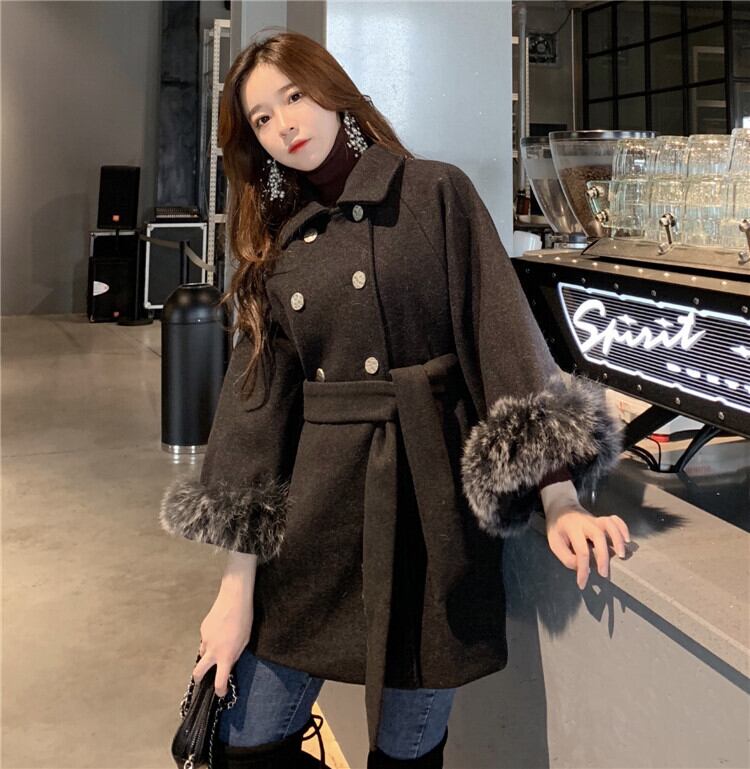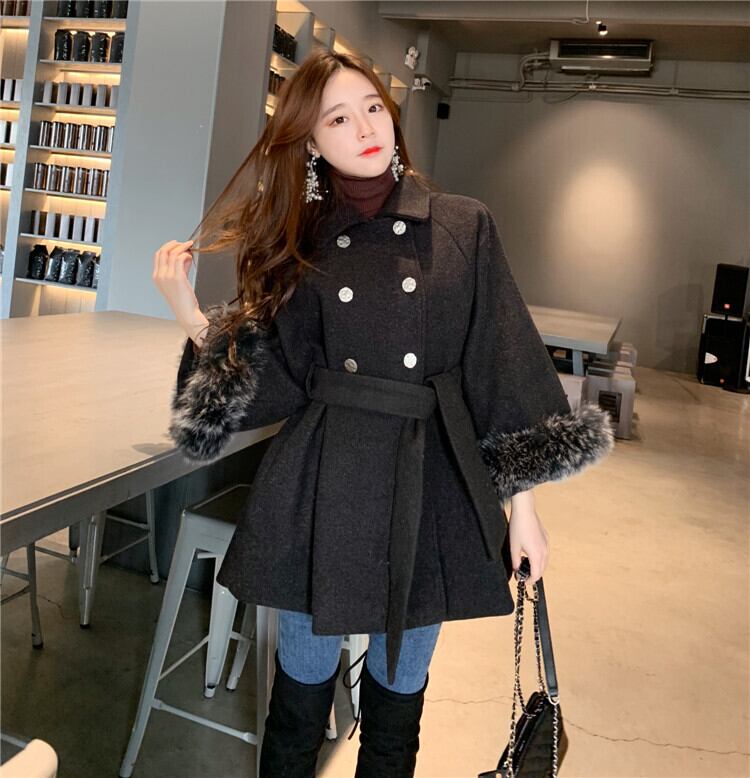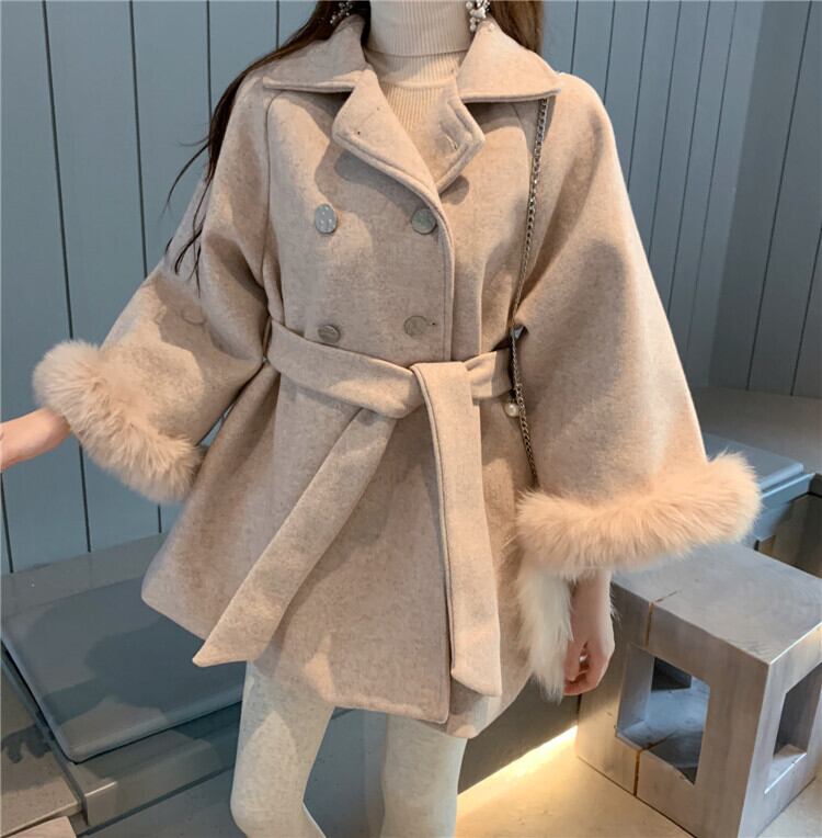 アウター コート レディース 送料無料 2色 エコファー フェイクファー 長袖 ダブルブレスト フレアスリーブ ベルト ポケット 前開き 大人可愛い きれいめ シンプル バイカラー 上品 おしゃれ レトロ こなれ感 ラフ クール モード系 エレガント モダン 主役級 フォーマル ゆったり ゆる 黒 ブラック カーキ 無地 春 秋 冬 10代 20代 30代 ママ オフィス ビジネス OL 通勤 デート お出かけ 休日 旅行 着回し 普段使い 重ね着 韓国系 オルチャン 楽ちん 体系カバー 定番