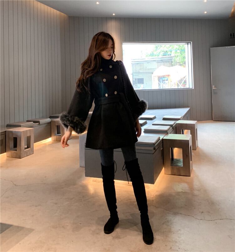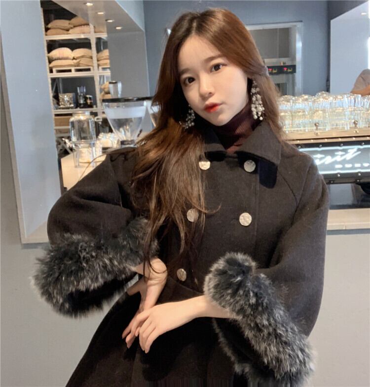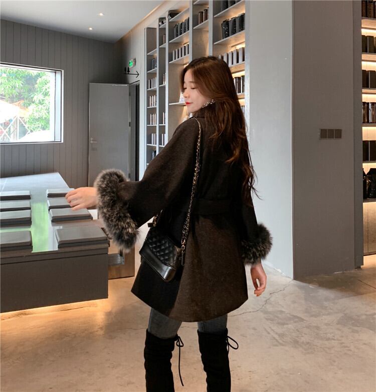 ミディアム丈で袖口のファーがラグジュアリーなコートです。