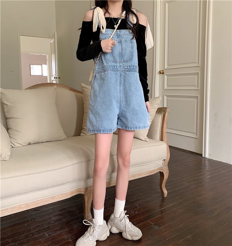 オールインワン レディース 送料無料 2色展開 コンビネゾン デニム サロペット ジャンプスーツ ウエストマーク ハイウエスト レイヤード ハイライズ ワイド ルーズフィット ポケット付き ワイドレッグ ミニ丈 ショート丈 ショートパンツ 楽ちん キュート ガーリー 大人可愛い シンプル ガジュマル ラフ 大人 おしゃれ お洒落 ゆったり ゆる S M L ブルー ブラック 春服 夏服 10代 20代 体型カバー 脚長 華奢見え 涼しい 休日 お出かけ 普段使い 重ね着 着回し コーデ デート トレンド