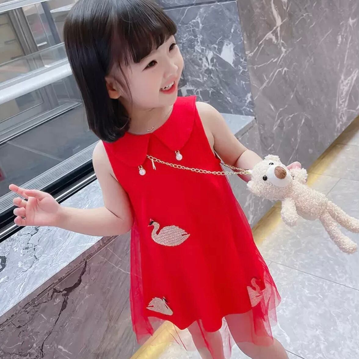 2色 子供服 80〜130 ノースリーブ ミディ丈 ドレス ワンピース 送料無料 白鳥 丸襟 リーフ フレアワンピース フレアスカート 子供 キッズコーデ キッズファッション キッズドレス キッズ 可愛い きれいめ エレガント 春 夏 ガーリー お出かけ 外出 きれいめカジュアル 着回し ファッション デート コーディネート 重ね着 休日 特別な日 お祝い 記念日 カジュアル 普段着 春コーデ 夏コーデ おしゃれ シンプル ゆったり 韓国ファッション コーデ パーティー パーティドレス 誕生日