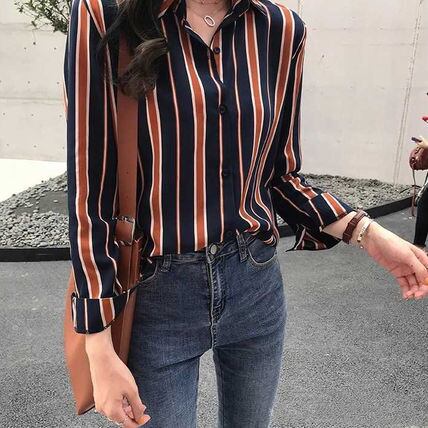 ストライプシャツ レディース 送料無料 2色 バイカラー マルチカラ—トップス シャツ ブラウス ストライプ柄 長袖 襟付き オーバーシャツ ワークシャツ ワイド オーバーサイズ ビッグシルエット 大人可愛い きれいめ 大人女子 こなれ感 ラフ マニッシュ キュート ガーリー ゆったり ストライプ プリント 重ね着 楽ちん 体型カバー 定番 春夏 秋冬 大人 かわいい おしゃれ 普段使い デイリー お出かけ オフィス 通勤 通学 旅行