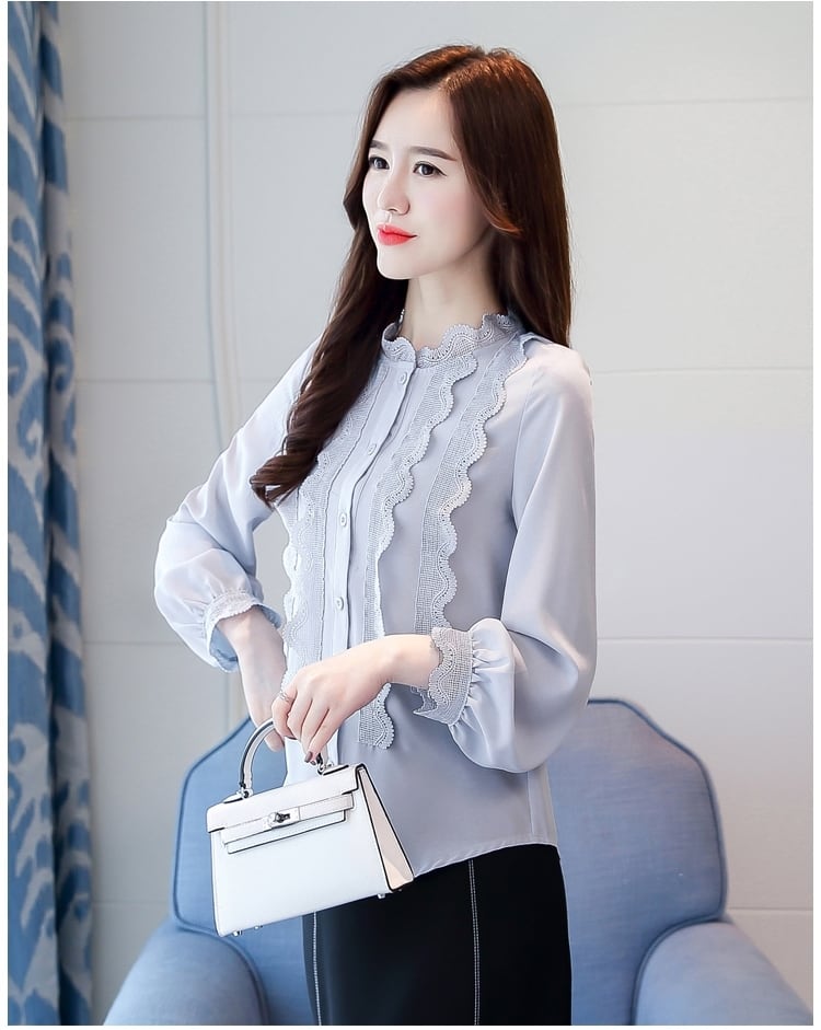 トップス レディース 送料無料 ブラウス シャツ スカラップ襟 フリル 長袖 襟なし シフォン 花柄 レース スタンドカラー プチハイネック 透け感 シアー シースルー ポリエステル ホワイト 白 ピンク アプリコット 単色 透け感 こなれ感 抜け感 ガーリー かわいい 可愛い 涼しい 上品 エレガント きれいめ ラブリー 女の子 お洒落 おしゃれ 春 春服 夏 夏服 10代 20代 デート おでかけ モテ 女子会 普段使い 着回し 重ね着 定番 2021 韓国 韓国系 オルチャン