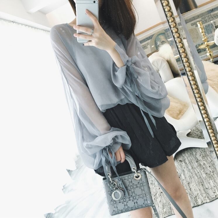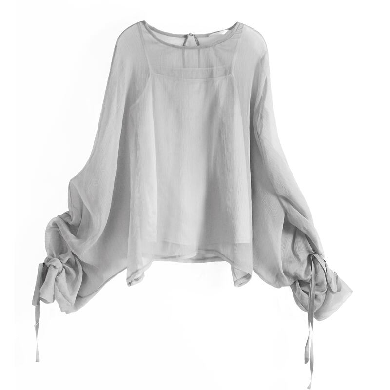 トップス レディース 送料無料 ブラウス 長袖 襟付き チュール シフォン ボリュームスリーブ シースルー リボン シャーリング パフスリーブ ゆったり 透け感 抜け感 こなれ感 シック クール かっこいい 個性的 華やか 派手 無地 春 春服 春物 秋 秋服 秋物 10代 20代 普段使い 重ね着 着回し おしゃれ お洒落 ラフ カジュアル 前開き シルバー 銀 ブラック 黒 グレー 灰色 涼し 通気性 薄手 ポリエステル シフォン シフォンシャツ ワイド 存在感 モード系 エキゾチック デート