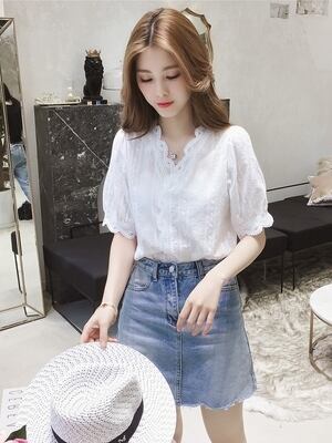 トップス レディース 送料無料 オフネック Vネックシャツ カシュクール スカラップ襟 パンチングレース ブラウス 半袖 五分袖 パフスリーブ ノーカラー 透け感 おしゃれ スタイル 体形カバー きれいめ エレガント クラシカル フェミニン 透け感 シースルー オフィス 通勤 OL お出かけ リゾート キュート ガーリー かわいいフリーサイズ アイボリー 上品 レース ナチュラル ロマンチック ブラウス 花柄 フラワー柄 ボタニカル柄 フェミニン レーシー フラワーレース バルーンスリーブ