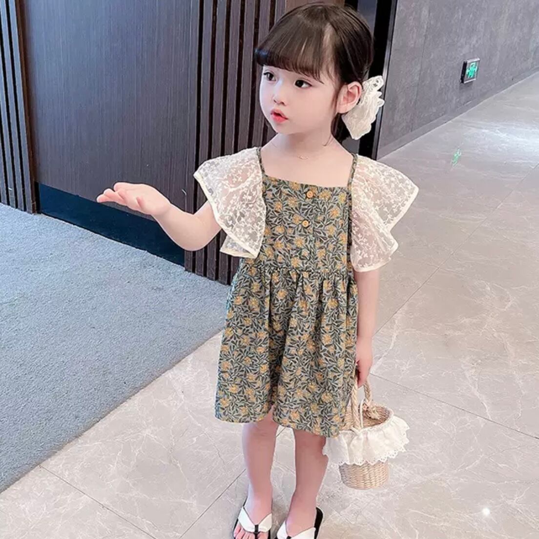 子供服 80〜110 フレアワンピース 半袖 フリルスリーブ ミディ丈 花柄 ワンピース 送料無料 ドレス スクエアカット フリル シースルー 子供 キッズコーデ キッズファッション キッズドレス キッズ 可愛い きれいめ エレガント 春 夏 ガーリー お出かけ 外出 きれいめカジュアル 着回し ファッション デート コーディネート 重ね着 休日 特別な日 お祝い 記念日 カジュアル 普段着 春コーデ 夏コーデ おしゃれ シンプル ゆったり 韓国ファッション コーデ パーティー パーティドレス 誕生日