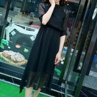 腕と袖の透け感が上品なフェミニンワンピースです。