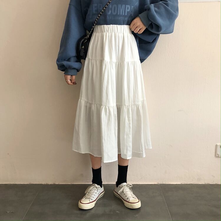 控えめなボリューム感がモダンなミモレ丈のティアードスカートです。