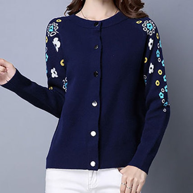 トップス レディース 送料無料 4色 花柄 長袖 カーディガン カラバリ ブラック ホワイト クルーネック サイズ4展開 S M L XL ニットカーディガン ミディアム丈 ショート丈 キュートカーディガン 通勤 休日 お出かけ 公園デビュー ママ友ランチ カジュアル シンプル デイリー 日常 おしゃれ ハイセンス ゆったり 楽ちん 20代 30代 40代 春 夏 秋 冬 オールシーズン 重ね着 着回し 韓国 韓国ファッション オルチャン