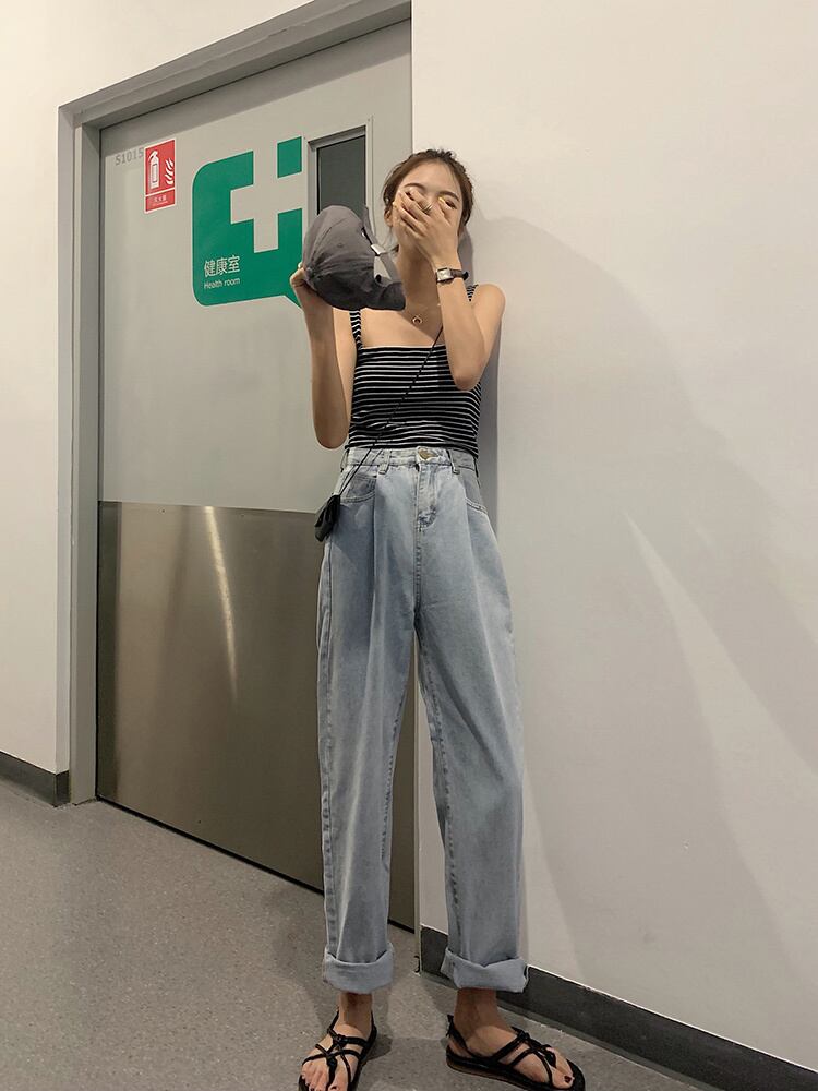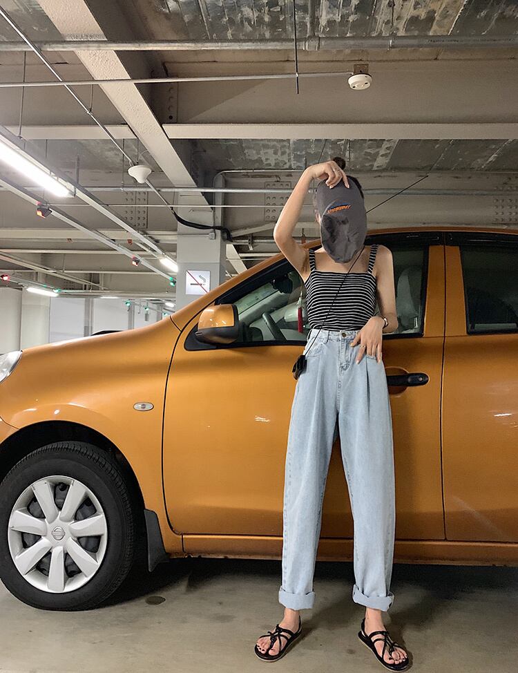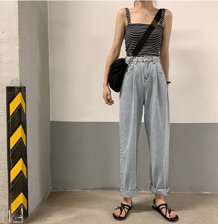 ゆるっとしたシルエットとケミカルウォッシュな色落ち具合が可愛いデニムパンツ。