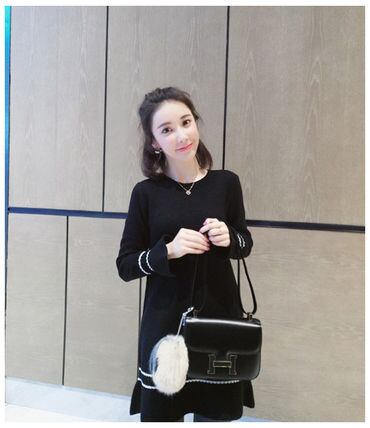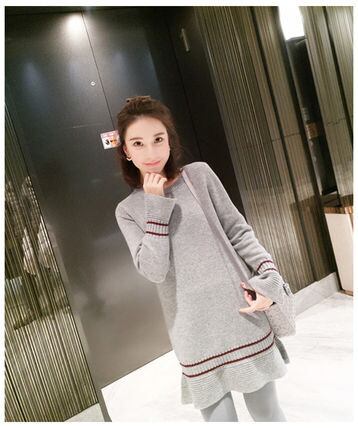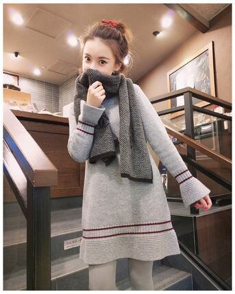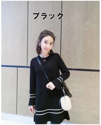 フェミニンなボディラインを演出する細めのニットワンピース。