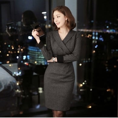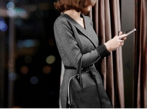 ウエストのラップ調デザインがシックなジャケット風ワンピース。