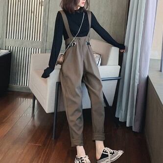 ハイネックセーター サロペット セットアップ カジュアル 袖あり 長袖 上下セット 2点セット お得 カジュアル おしゃれ お洒落 かっこいい 大人可愛い ラフ メンズライク マニッシュ ボーイッシュ スポーティー クール 黒 ブラック 茶色 ブラウン 無地 春 秋 冬 10代 20代 30代 40代 レディース 学生 通学 お出かけ 公園デビュー 休日 運動 ジム ヨガ アウトドア 着回し 普段使い 重ね着 韓国 韓国系 オルチャン ファッション コーデ スタイル トレンド 流行