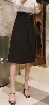 ウエストベルトとラップ調デザインが華やかなスカート。
