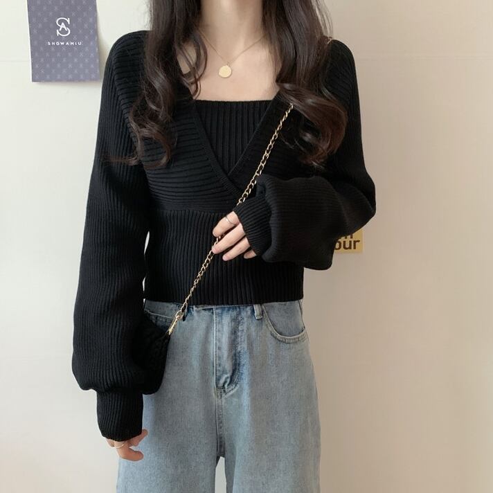 デザインニット レディース 送料無料 2色 リブニット トップス ニット Vネック スクエアネック レイヤード風 クロススリットニット スリット セーター 長袖 パフスリーブ ランタンスリーブ 切り替えデザイン リブ 大人可愛い きれいめ 上品 モード系 エレガント グレー 高見え 格上げ インスタ映え 春 秋冬 大人 かわいい おしゃれ 普段使い デイリー お呼ばれ お出かけ デート オフィス 通勤 通学 旅行 パーティー 二次会 トレンド