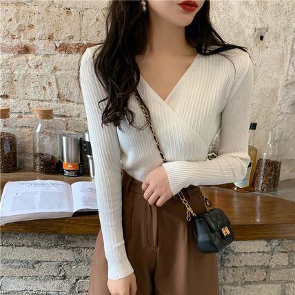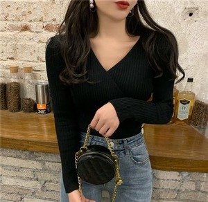 着映えするフロントクロスデザインでモダンな雰囲気のリブニット