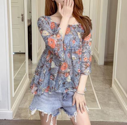 トップス レディース 送料無料 2色 ブラウス シャツ スクエアネック カシュクール フリル バックコンシャス 七分袖 襟なし シフォン 花柄 レース シアー シースルー ポリエステル ホワイト 白 ピンク アプリコット 単色 透け感 こなれ感 抜け感 ガーリー かわいい 可愛い 涼し 通気性 キュート 上品 エレガント きれいめ ラブリー 女の子 お洒落 おしゃれ 春 春服 夏 夏服 10代 20代 デート おでかけ モテ 女子会 普段使い 着回し 重ね着 定番 2021 韓国 韓国系 オルチャン