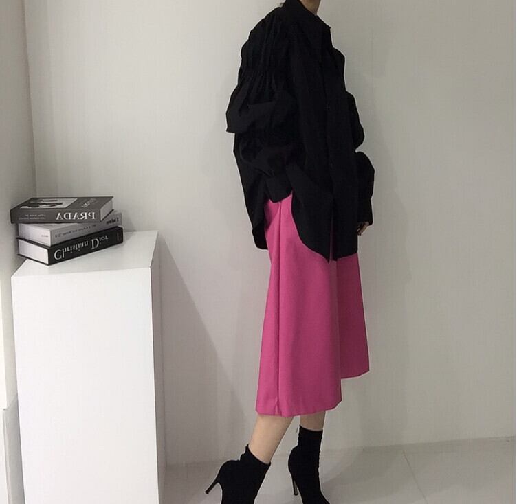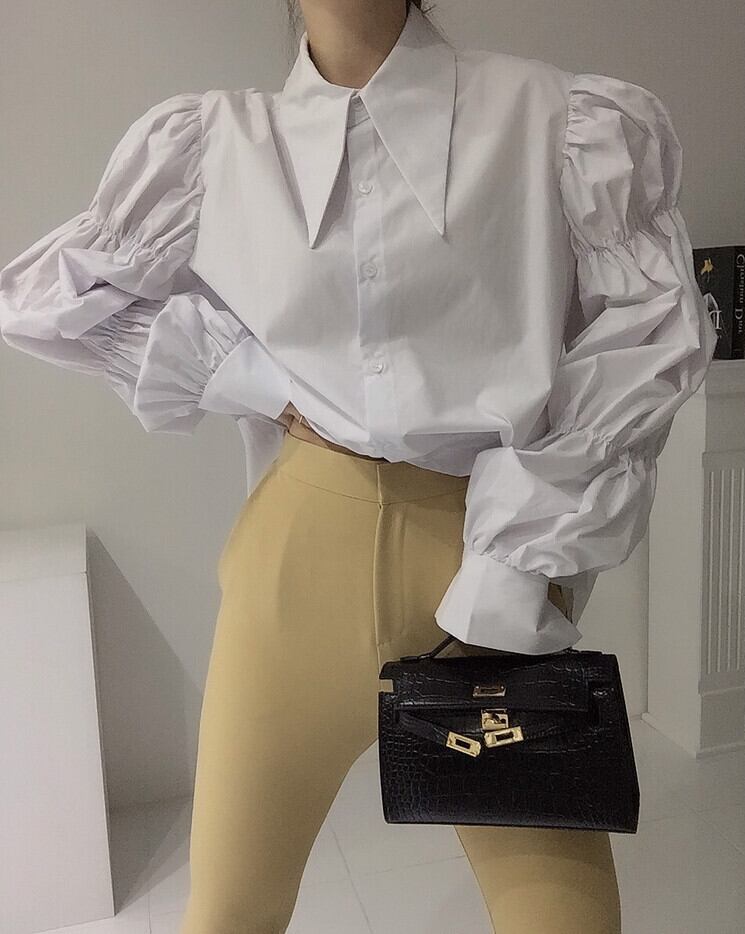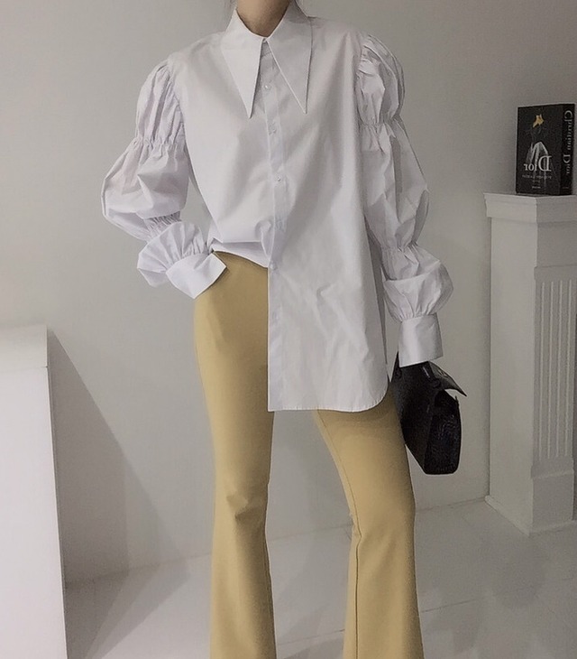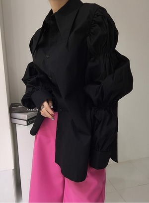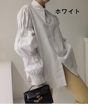 ボリューム袖のギャザーがキュートなシャツブラウスです。