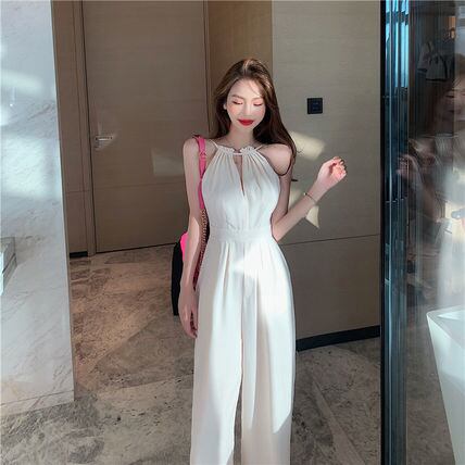 オールインワン レディース 送料無料 コンビネゾン サロペット ホルターネック キーネック キャミソール ジャンプスーツ オーバーオール ノースリーブ ストレート ワイド ルーズフィット 襟コンシャス ベルト ワイドレッグ マキシ丈 ロング丈 コットン リネン 大人可愛い シンプル ガジュマル ラフ 大人 おしゃれ お洒落 ゆったり ゆる S M L XL ブルー 青 ホワイト 白 夏服 10代 20代 30代 40代 楽ちん 体型カバー 涼しい 休日 お出かけ 普段使い 重ね着 コーデ 涼しい