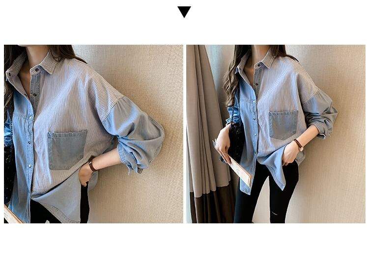 トップス レディース 送料無料 2色 シャツ ワイシャツ ブラウス 襟付き デニム ストライプ ポケット付き 切り替え ランタンスリーブ レース パフスリーブ 長袖 ロングスリーブ ストレート 白 ホワイト ブルー 青 水色 無地 トレンド かわいい 可愛い カジュアル シンプル きれいめ 上品 エレガント こなれ感 抜け感 ラブリー キュート ガーリー フェミニン 春 春服 夏 夏服 秋 秋服 冬 冬服 デート おでかけ 学生 通学 モテ 着回し 普段使い 重ね着 10代 20代 コーデ