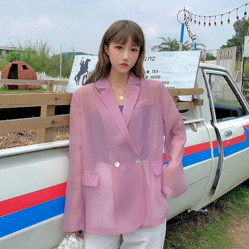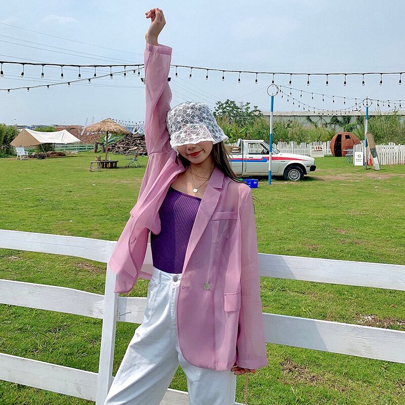アウター レディース 送料無料 ジャケット テーラードジャケット 長袖 ライン シアー 透け感 シーダブルブレスト レトロ シフォンおしゃれ モード ノーカラー かわいい オーバーサイズ ゆったり ビッグシルエット メンズライク カジュアル ラフ こなれ感 グリーンク 無地 普段使い 流行