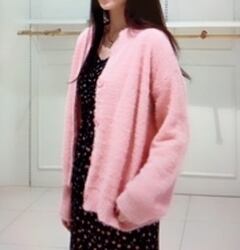 モヘアのふんわり感がフェミニンなニットカーディガン。
