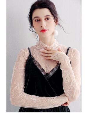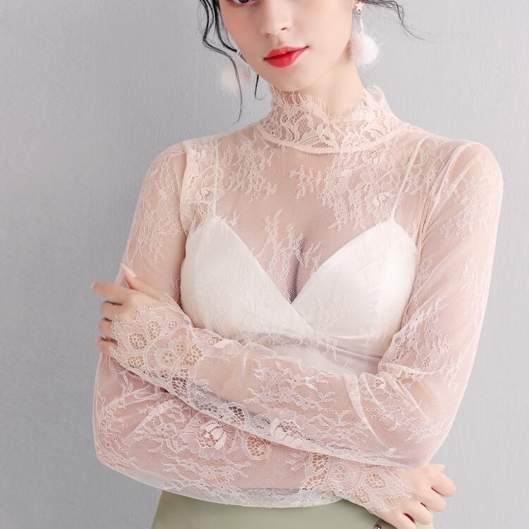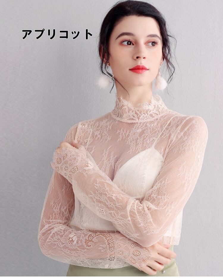 トップス レディース 送料無料 3色 ブラウス シャツ メッシュ フリル 長袖 総レース 襟なし シフォン 花柄 レース スタンドカラー アイラッシュレース プチハイネック 透け感 シアー シースルー ポリエステル ホワイト 白 ピンク アプリコット 単色 透け感 こなれ感 抜け感 ガーリー かわいい 可愛い 涼しい 上品 エレガント きれいめ ラブリー 女の子 お洒落 おしゃれ 春 春服 夏 夏服 デート おでかけ モテ 女子会 普段使い 着回し 重ね着 定番 2021 韓国 韓国系 オルチャン