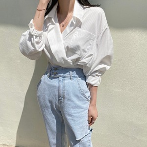 ストライプシャツ レディース 送料無料2色 トップス シャツ カシュクール ブラウス ストライプ柄 長袖 襟付き メンズライク マニッシュ オーバーシャツ ワークシャツ ワイド オーバーサイズ ビッグシルエット 大人可愛い きれいめ 大人女子 こなれ感 ラフ マニッシュ キュート ガーリー ゆったり ストライプ プリント 重ね着 楽ちん 体型カバー 定番 春夏 秋冬 大人 かわいい おしゃれ 普段使い デイリー お出かけ オフィス 通勤 通学 旅行2色