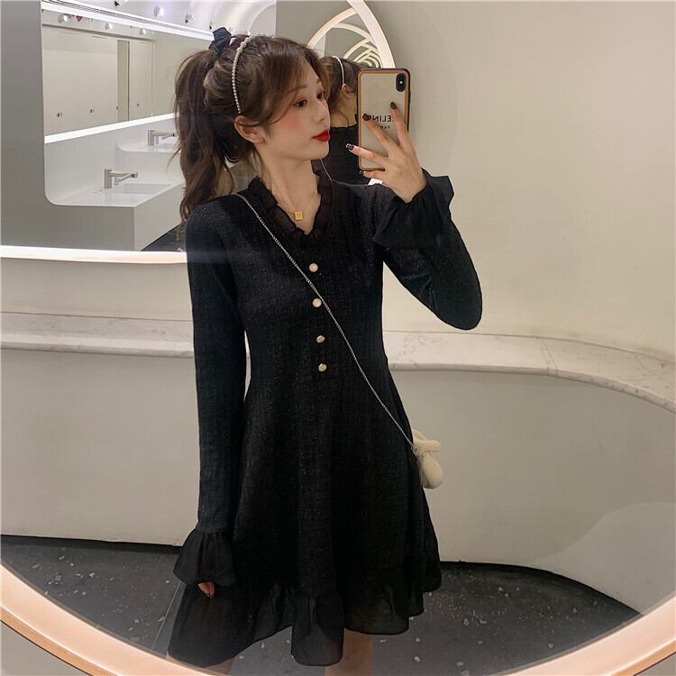 タイトなリブニットとふんわり快適なスカートのミニワンピース。